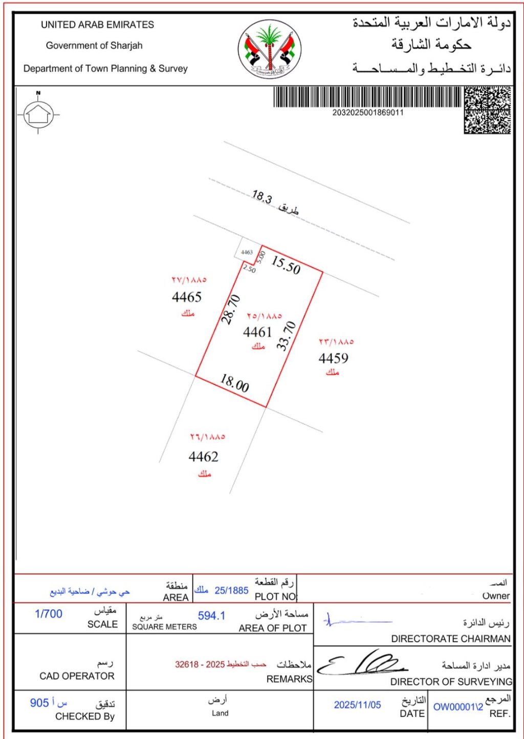 أرض للبيع في منطقة الحوشي، الشارقة موقع مميز جدا قريب جسر الحوشي أرض سكنية مساحة 6395 قدم تصريح فيلا سكنية أرضي + أول تملك حر جميع الجنسيات العربية مطلوب 1500000 درهم