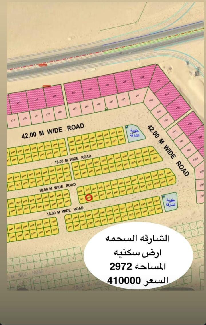 للبيع قطعة أرض سكني في إمارة الشارقة بمنطقة السحمة 2 ضاحية الرويضات مساحة 2972 قدم تصريح أرضي + طابقين موقع مميز قريب المسجد والحديقة والخدمات قريب شارع خور فكان تملك خليجي والأخوه العرب السعر 410000 درهم