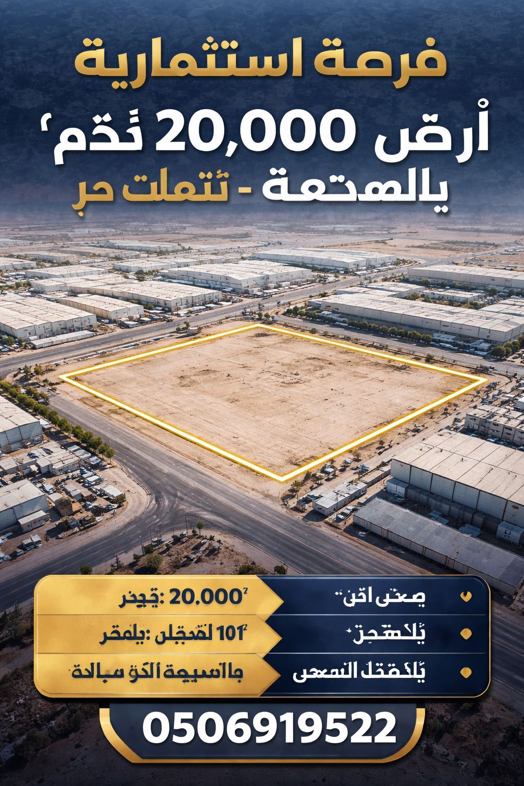 أرض للبيع في المنطقة الصناعية في الصجعة - تملك حر لجميع الجنسيات المساحة 20000 قدم السعر 200 درهم للقدم نوع التملك حر ومتاح لجميع الجنسيات للتواصل فرصة استثمارية مميزة في موقع صناعي استراتيجي، مناسبة للتطوير أو الاستثمار