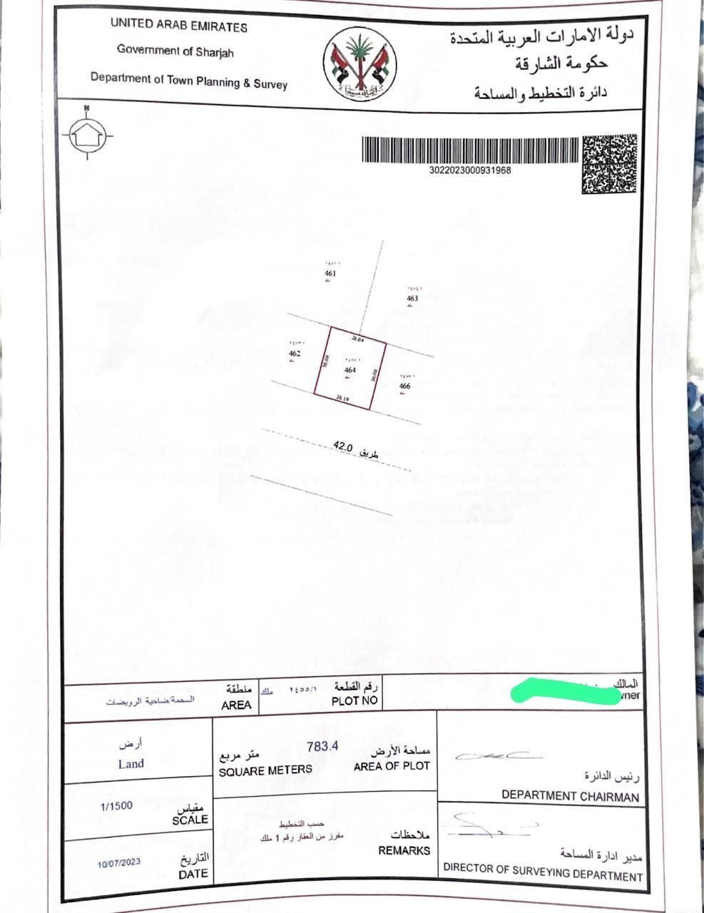 للبيع أرض في السحمة - المساحة 8432 قدم مربع - التصنيف تجاري سكني - التصريح أرضي + طابقين - بدون اقساط - موقع مميز مقابل الحديقة المطلوب 1400000 درهم