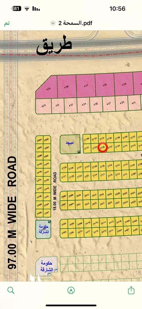 أرض سكني للبيع في منطقة السحمة في موقع ممتاز جدا ثاني قطعة من الشارع العام قريبة من الحديقة والمسجد مساحة 3000 قدم تصريح بناء أرضي + 2 تملك حر للعرب السعر المطلوب 450000 ألف درهم