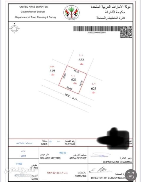فرصة (274) ذهبية للبيع أرض في إمارة الشارقة منطقة تلال زون D مساحة الأرض 662.20 متر مربع 7128.18 قدم مربع مساحة البناء المسموح بها التقريبية 9035 قدم مربع تصريح بناء أرضي + أول + 50% رووف تملك حر لجميع الجنسيات السعر 2600000 مليون درهم