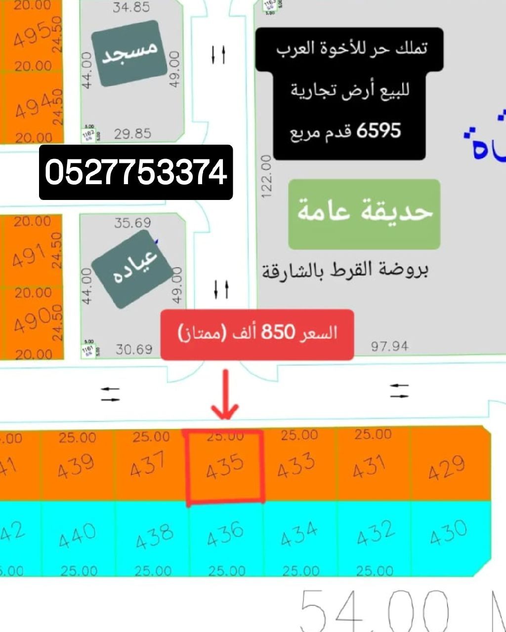 للبيع أرض في الشارقة منطقة روضة القرط ضاحية الرويضات تصريح تجاري مساحة 6595 قدم مربع بسعر لقطة للتواصل محمد هشام مكتب ركن الريادة