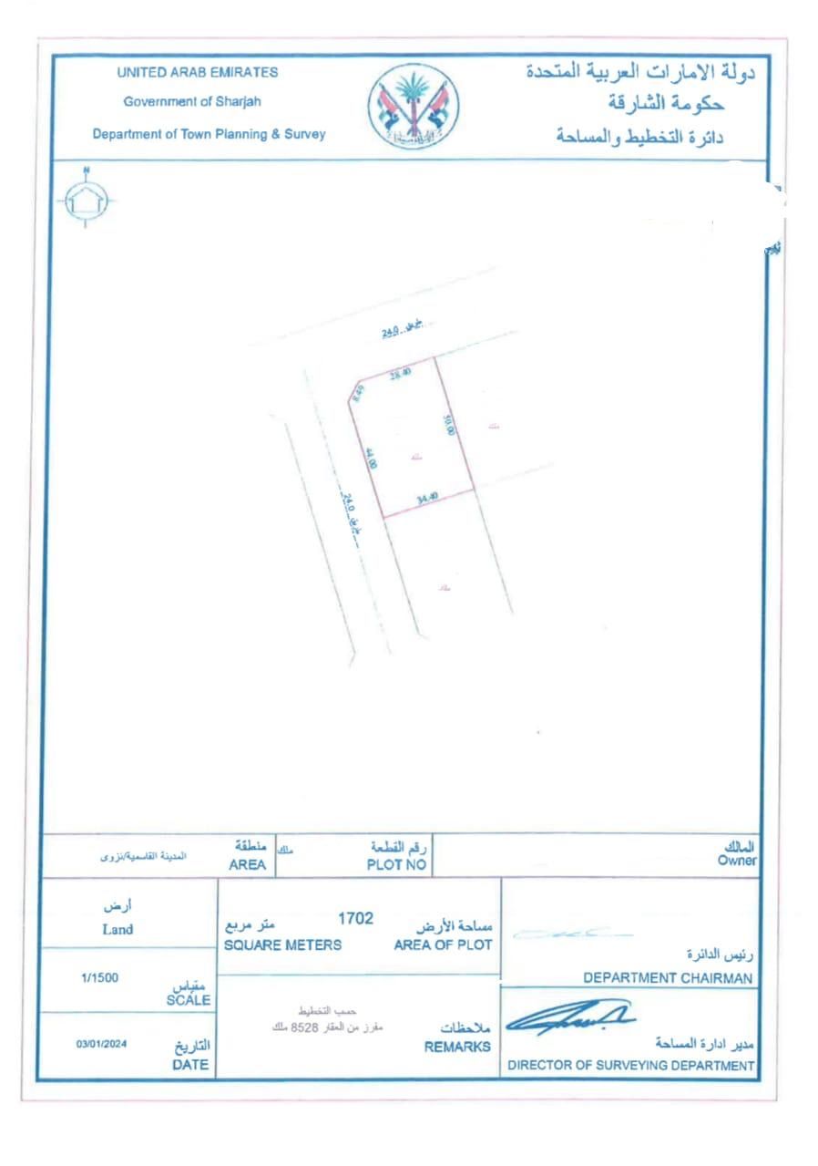 للبيع أرض في القاسمية 3 الأرض زاوية علي شارعين 24 مساحة الأرض 18320 قدم سعر القدم 100 درهم