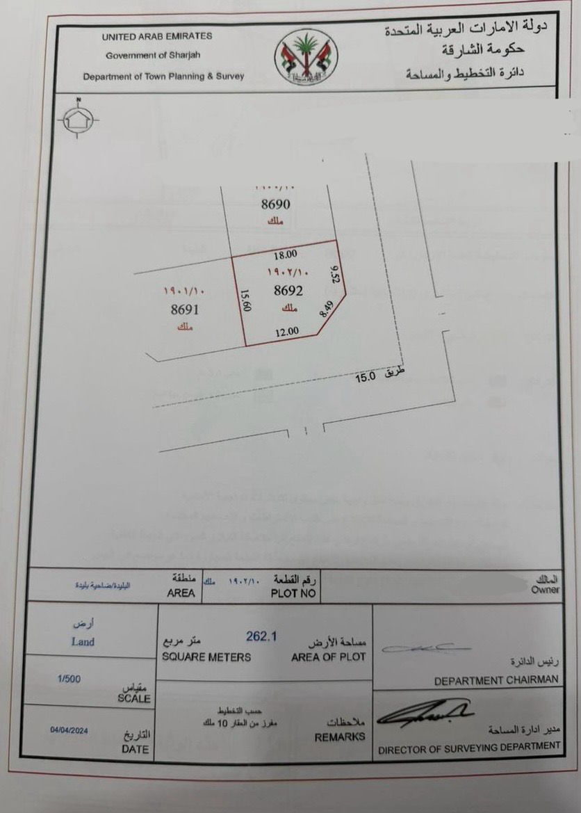 للبيع أرض سكنية زاوية - البليدة 1 الشارقة موقع مميز - أمام المسجد مدخل المشروع المساحة 2821 قدم السعر المطلوب 450000 درهم