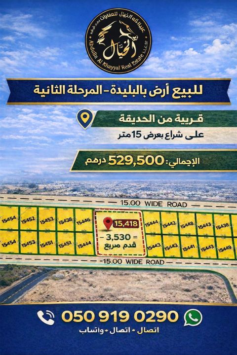 لشراء أرض بالبليدة وبناء فيلا أحلامك بسعر 150 درهم للقدم بمساحات 3530 قدم مربع بموقع مميز قرب الجامع والحديقة تملك عرب