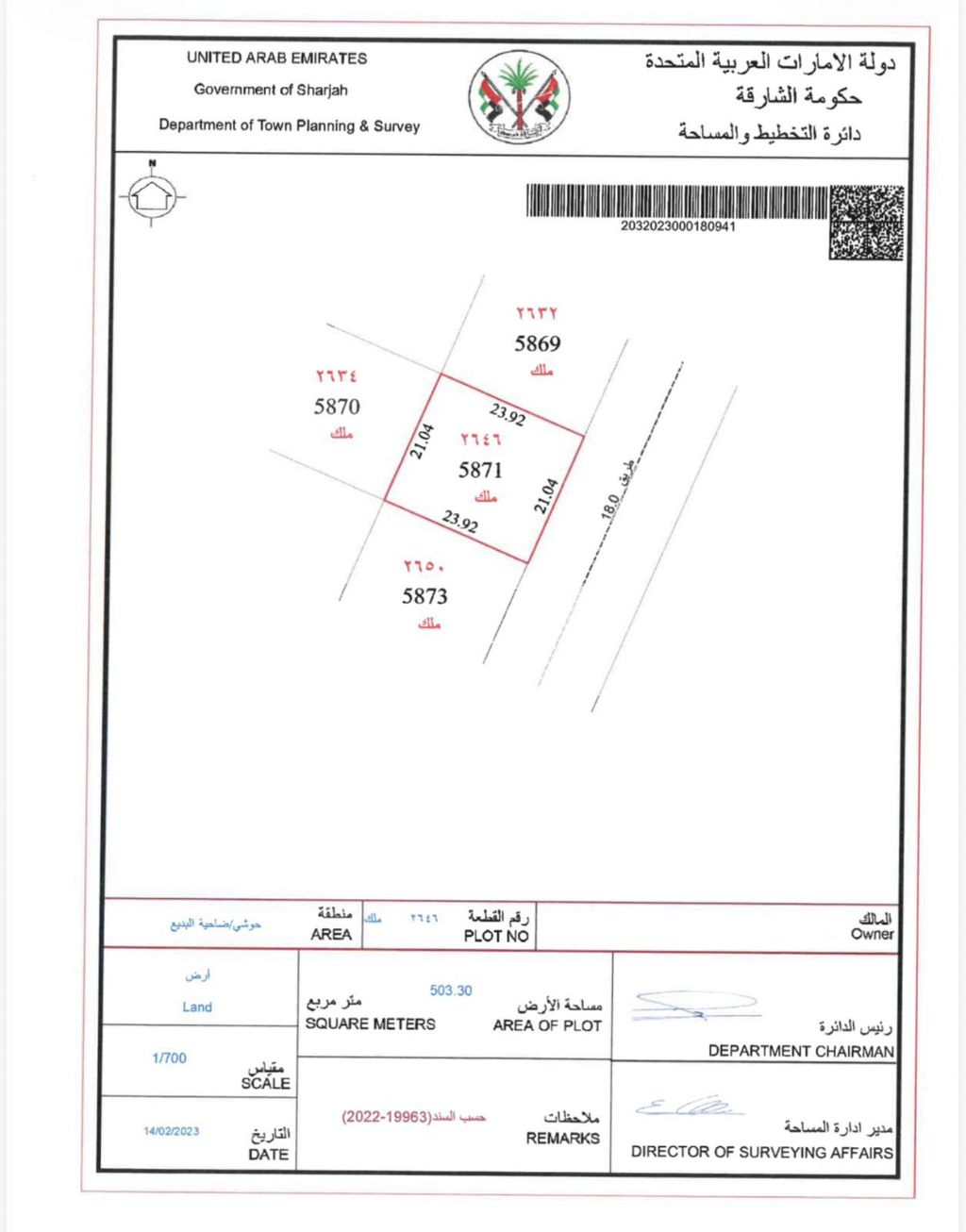 للبيع أرض سكني في الشارقة منطقة الحوشي مساحة الأرض 5417 قدم تصريح أرضي + أول + 50% من الرووف مسموح بتسجيل وافد عربي السعر المطلوب 1250000