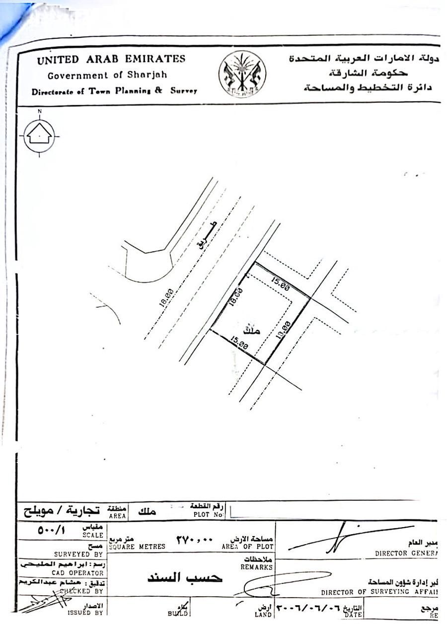 Commercial land for sale in Sharjah, Muwailih Area approximately 2900 square feet 270 SQM Prime location near Nesto and Safari Mall, and close to all services required price AED750000