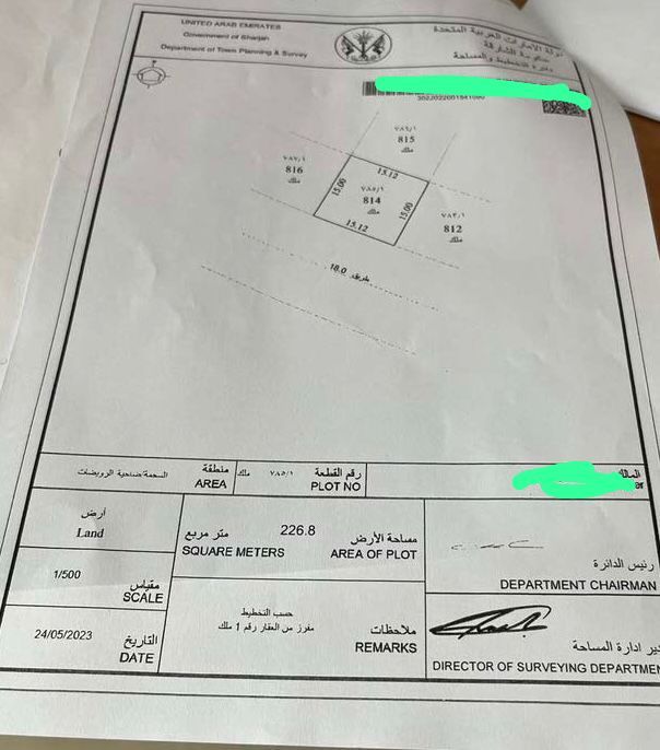 Land for sale in Sharjah, Al Samha area Price 477000 Area 2432 SqFt