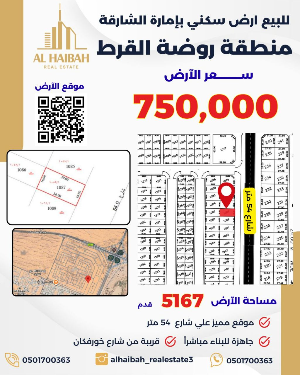للبيع - قطعة أرض سكنية مميزة في إمارة الشارقة (منطقة روضة القرط) المساحة 5166 قدم مقابل المسجد والحديقة مباشرة السعر المطلوب 750000 درهم موقع استراتيجي مثالي لبناء فيلا عائلية أو للاستثمار السكني للاستفسار والتواصل يرجى الاتصال ب