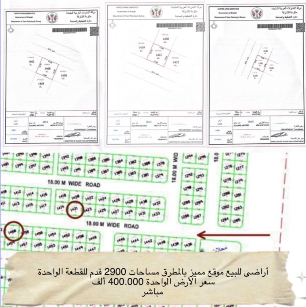 للبيع في إمارة الشارقة (المطرق) مساحات 2900 قدم أرض موقع متميز بقلب المطرق وأسعار مناسبة للجميع البيع مباشر