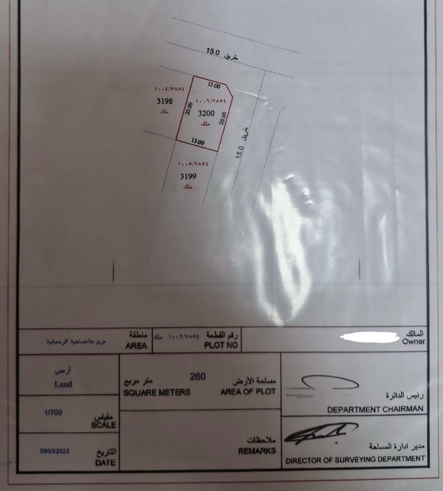 For sale residential land in Muzirea - Sharjah Area 2800 square feet Location Corner on two streets and close to the park Price AED550000 Distinctive location in a quiet and serviced area, suitable for building a residential villa with a modern design. Free ownership for all Arab nationalities