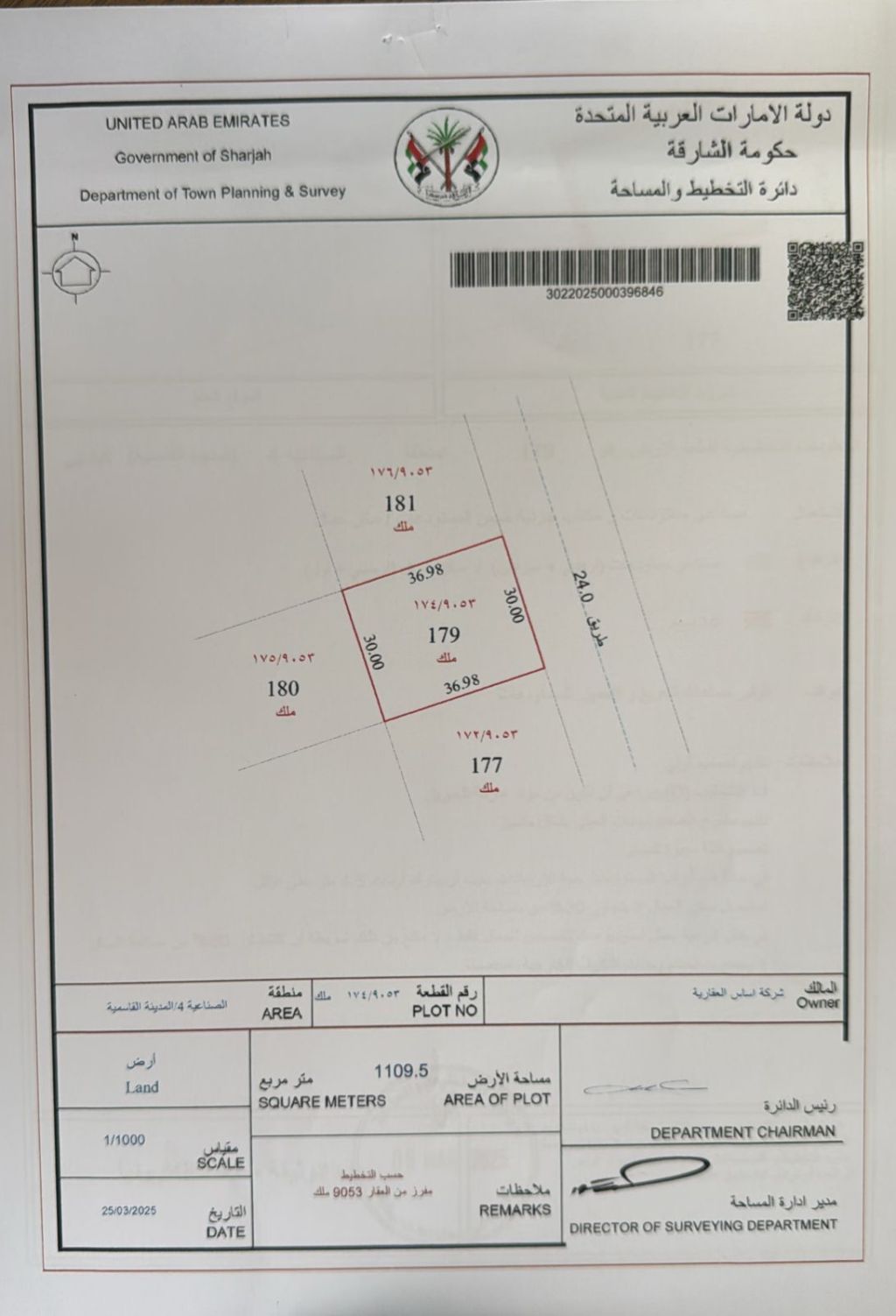 للبيع أرض في القاسمية 4 - الشارقة المساحة 11942 قدم مربع السعر 116 درهم للقدم موقع مميز - منطقة حيوية ومطلوبة