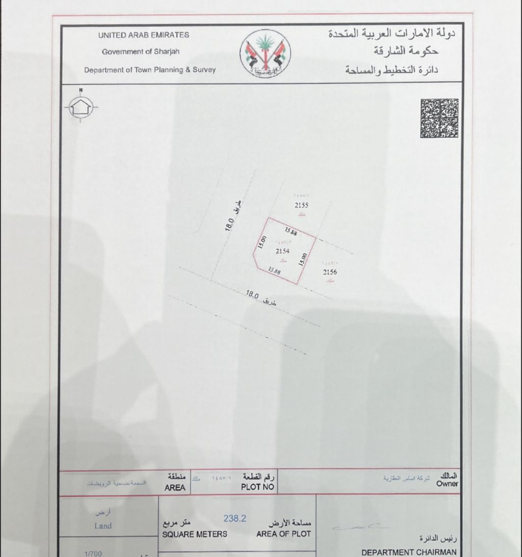 للبيع أرض زاوية في السحمة مساحة 2563 قدم سعر 420000 درهم نهائي