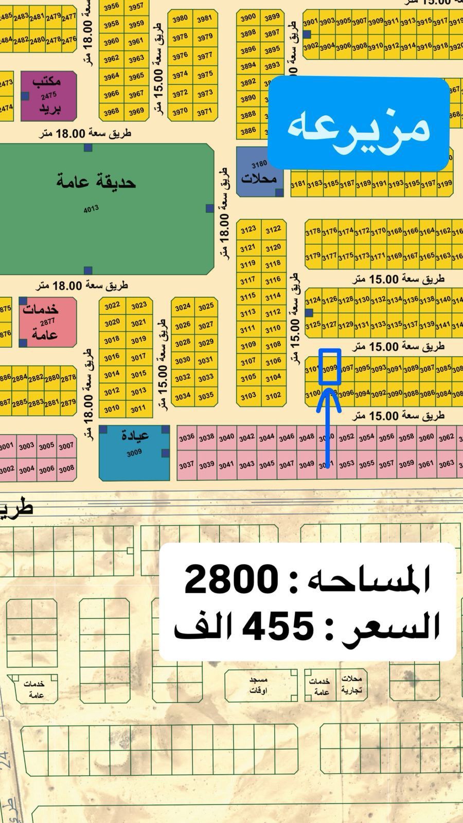 للبيع أرض في مزيرعة تأتي قطعة من الزاوية مساحتها 2800 قدم بسعر مميز 455 ألف درهم