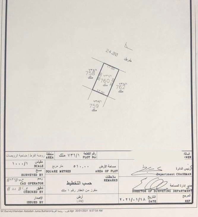 Residential land in Rawdat Al - Kart project - Sharjah Land number 760 Area 5490 ft Total price AED725000 A privileged location within a high - end project where full services and infrastructure are available, ideal for building a residential villa with a modern design in a quiet and integrated environment