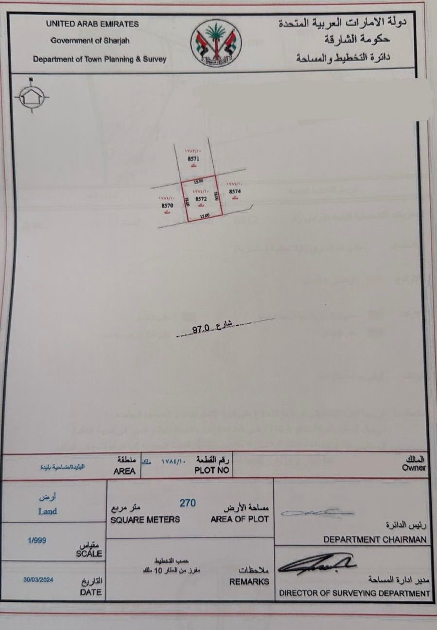Residential land in Blida - Sharjah Area 2906 feet Foot price 180 dirhams Total price AED523080 A privileged location within the Blida residential area, suitable for building a villa with a modern design, and close to the main roads and vital services