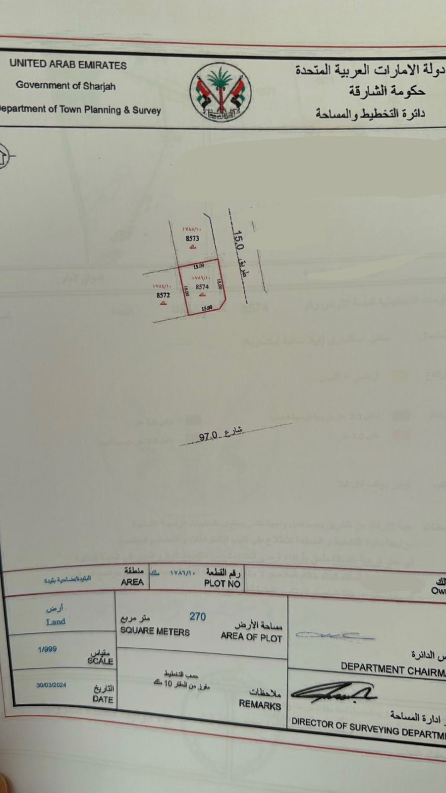 Corner Residential Land in Blida - Sharjah Area 2906 feet Foot price 190 dirhams Total price AED552140 A privileged location on a corner inside the Blida residential area, ideal for building a high - end villa with a special design, characterised by easy access and proximity to basic services and facilities