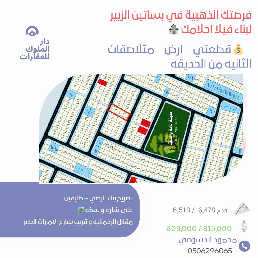 Your unique opportunity to build a villa of a lifetime in Basateen Al Zubair Location Basateen Al Zubair - opposite Al Rahmaniyah Minutes from Emirates Road Transit Details Two adjacent plots of land Areas 6518 ft and 6478 ft2 Building permit ground floor, two floors An upscale and quiet location close to all services Price 125 dirhams per foot only