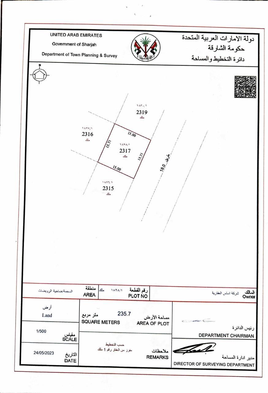 للبيع أرض سكني بالسحمة مساحة 2537 قدم مطلوب 410000 درهم
