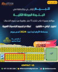 فرصة استثمارية ذهبية أراضي سكنية للبيع في الشارقة، في مشروع البليدة المرحلة الثانية مواقع مميزة على شارع 15 متر، وقريبة من جميع الخدمات مساحة الأراضي تبدأ من 3524 قدم مربع الأسعار تبدأ من 152 درهم اماراتي للقدم تملك حر لجميع الجنسيات العربية اقساط لمدة سنتين ما عليك سوى التواصل معنا وسنزودك بجميع التفاصيل عبر رقم الهاتف أو البريد الألكتروني