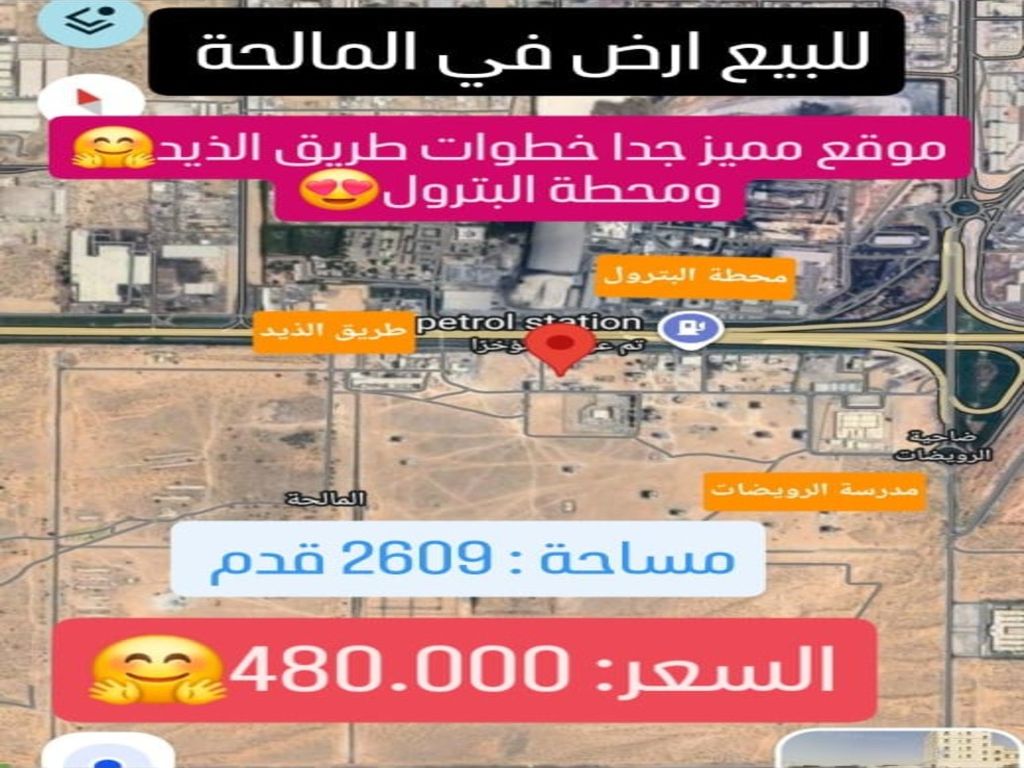 للبيع - أرض تجارية مميزة في منطقة المالحة (الشارقة) موقع ممتاز خلف محطة البترول، وبجانب المدرسة وجميع الخدمات. قريبة من شارع الذيد، موقع استراتيجي وحيوي. الأرض مستوية وجاهزة للبناء. المساحة حوالي 2609 قدم مربع. السعر 480000
