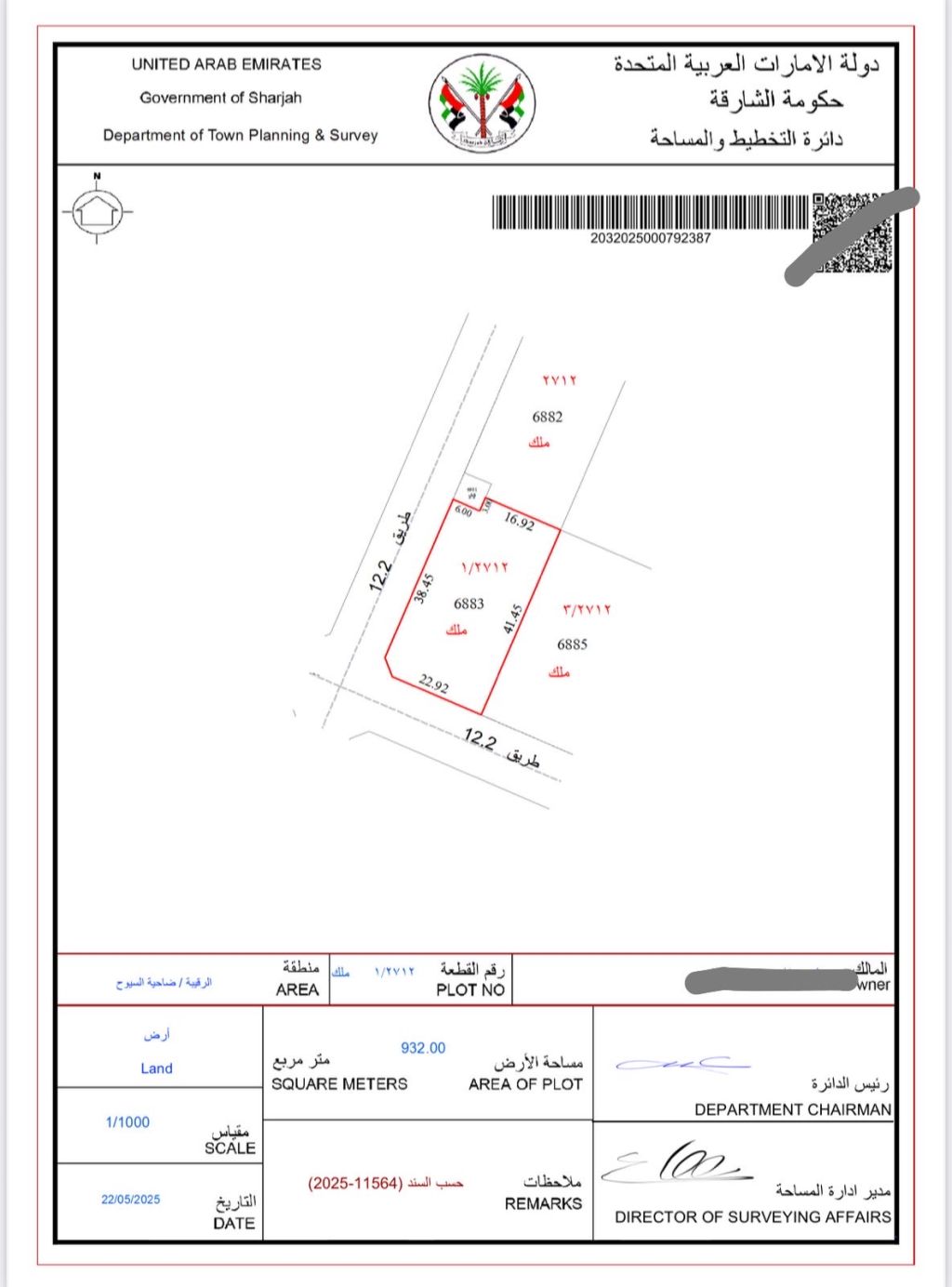 للبيع أرض في الرقيبة زاوية وسكة بمساحة 10032 قدم أمام مشروع نسمة موقع مميز جدا مطلوب 1M850 قابل للتفاوض