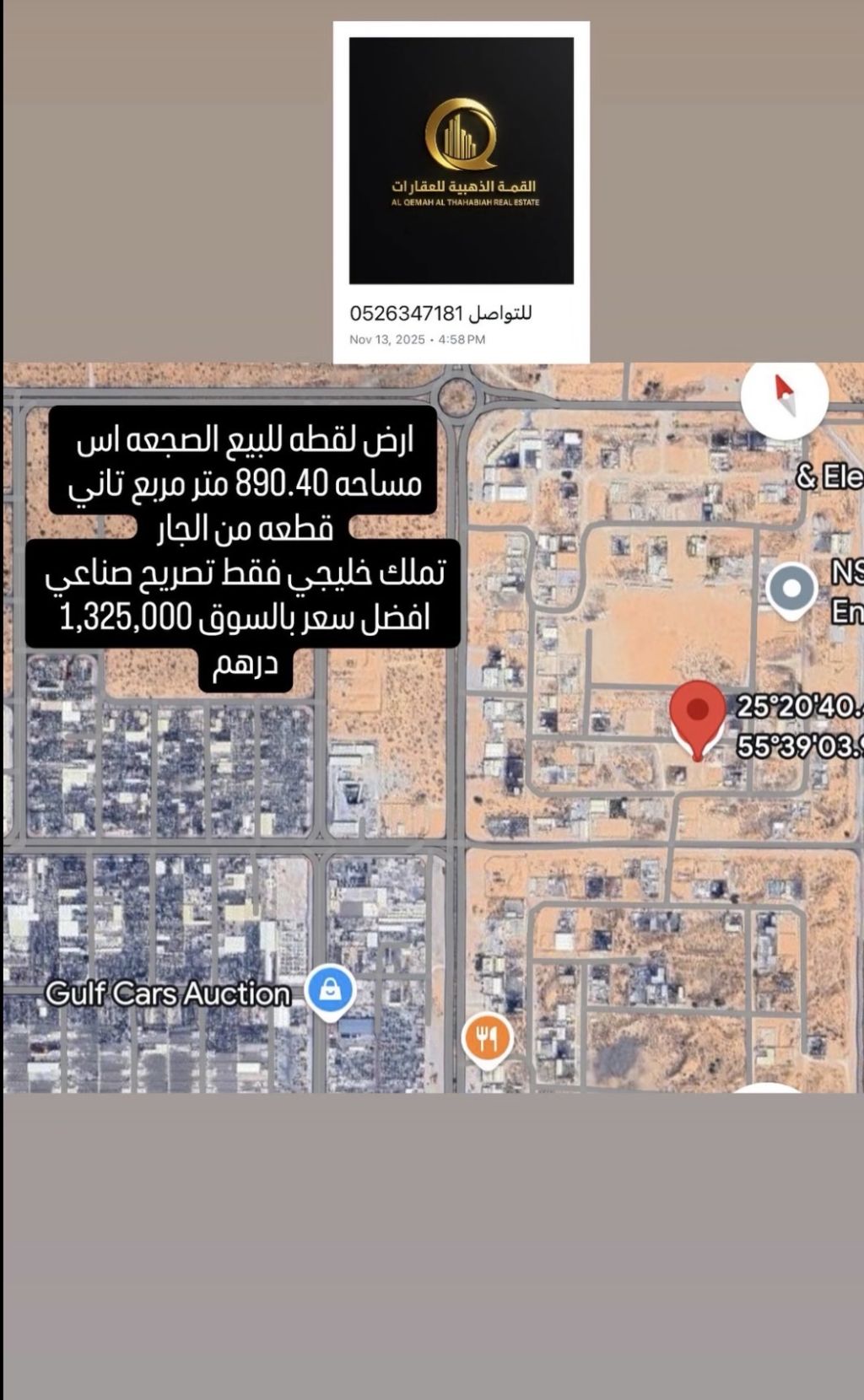 أرض لقطة للبيع في الصجعة أس مساحة 890 قدم متر مربع ثاني قطعة من الشارع الجار مواطنين ودول مجلس التعاون تصريح صناعي السعر 1325000