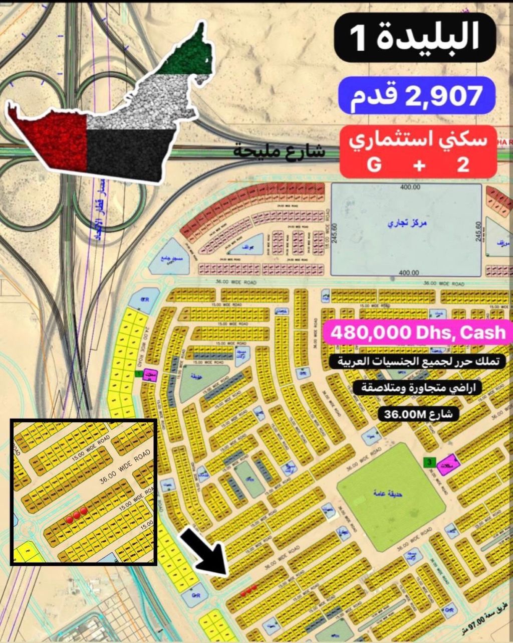 Residential Land - Blida, Sharjah - 2907 ft for sale investment residential land in Blida - Sharjah with an area of 2907 feet, building permit G 2. Free ownership for all Arab nationalities. asking price AED480000 A convenient location for residential and investment construction in a quiet area and close to services