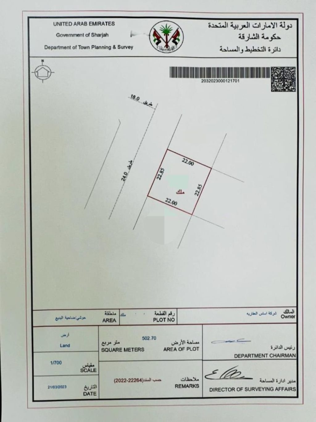 Land for sale in Sharjah, Al Hoshi area 5400 SqFt Prime location required price AED1250000 (negotiable)
