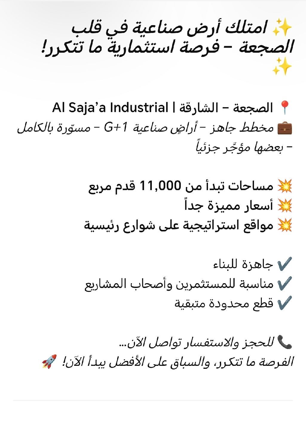 أراضي للبيع الصجعة الصناعية في الشارقة
