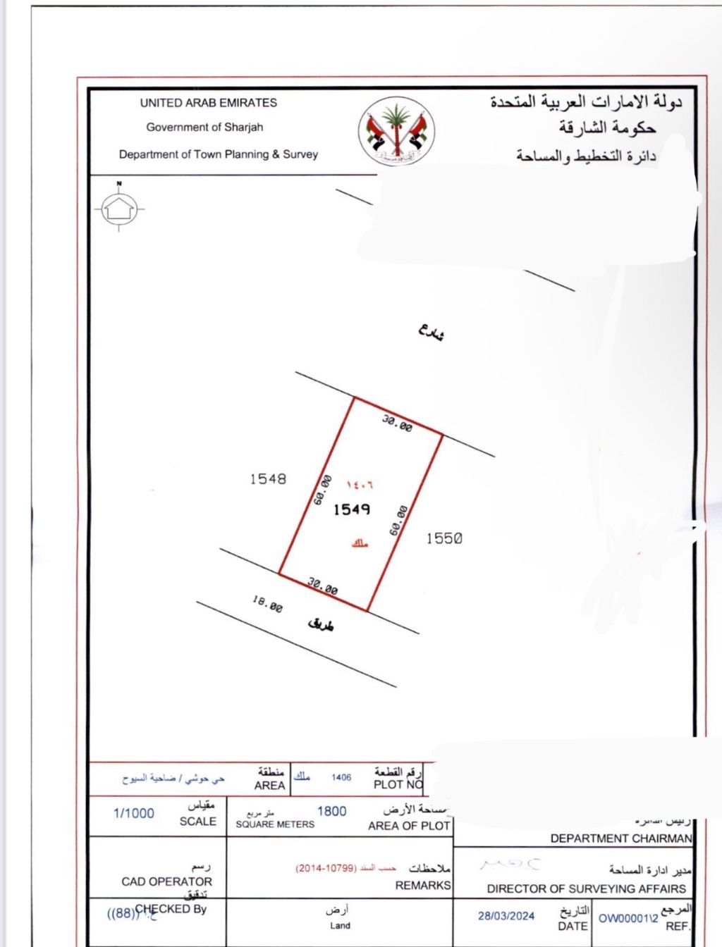 Residential Land for sale - Al Houshi District, Sharjah - 19375 ft A large area in a distinctive residential location within Al - Houshi neighbourhood. asking price 3000000 dirhams Excellent opportunity to build in one of the best areas in Sharjah