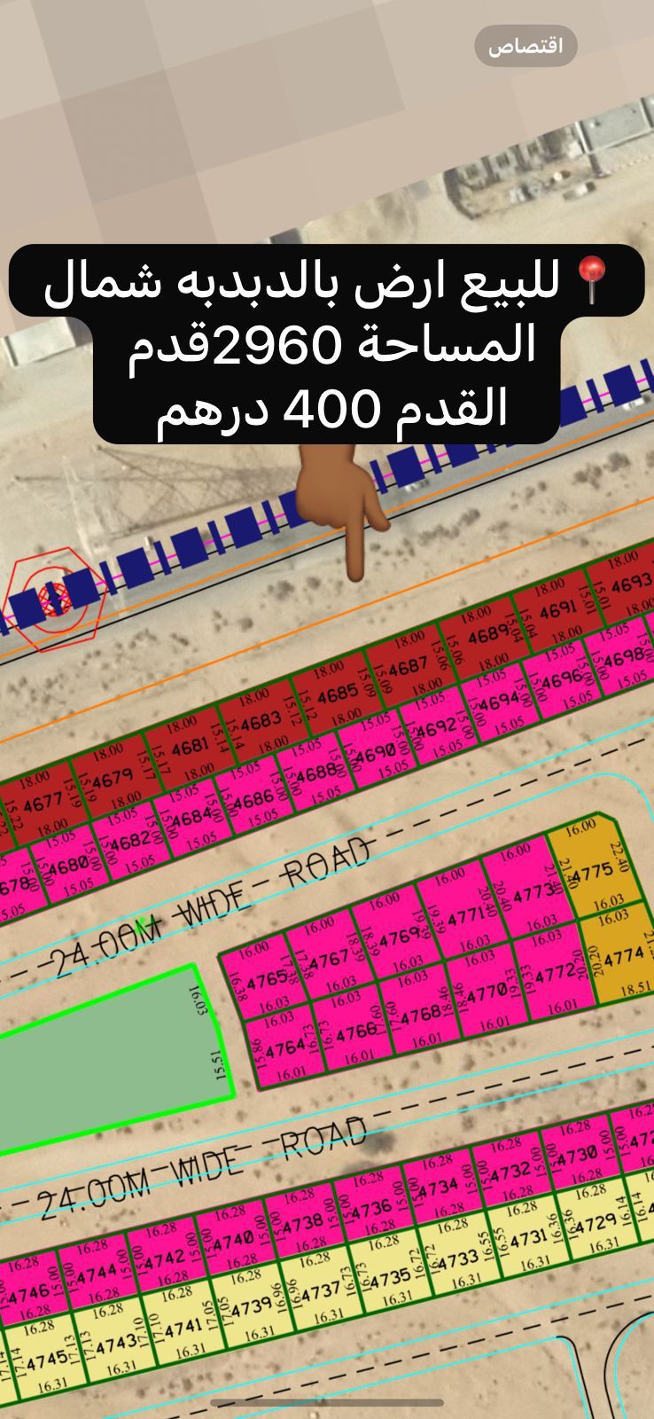 For sale Commercial Residential Land - Al - Dabba District North - 2960 feet - Area 2960 feet The price of the foot 400 dirhams - Total price AED1184000 Part No. 4687