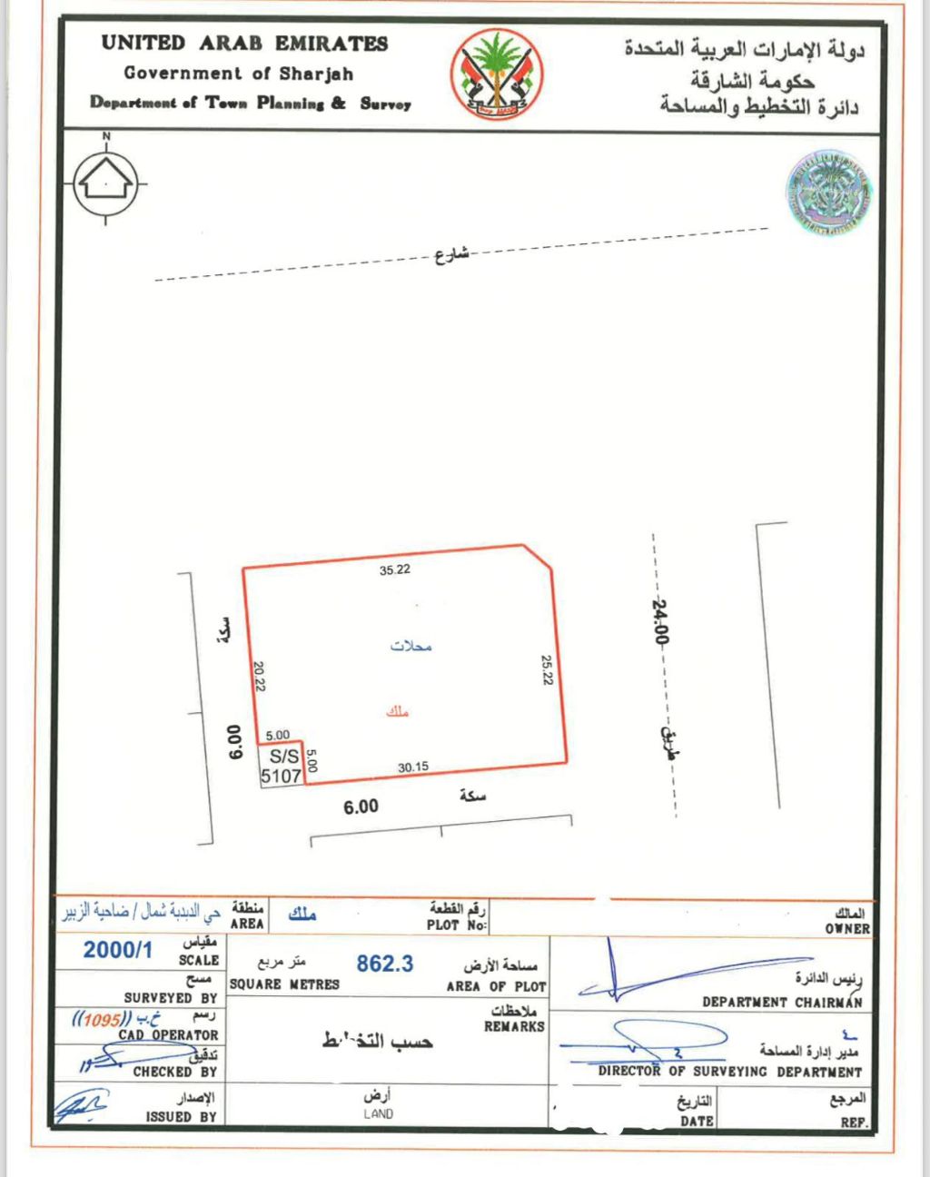 For sale - Al - Dabdaba North District, Al - Zubair Suburb - 9282 feetin a convenient location for investment. Area 9282 feet The price of the foot 400 dirhams - Total Price AED3712800 - Remaining 4 checks worth AED519780