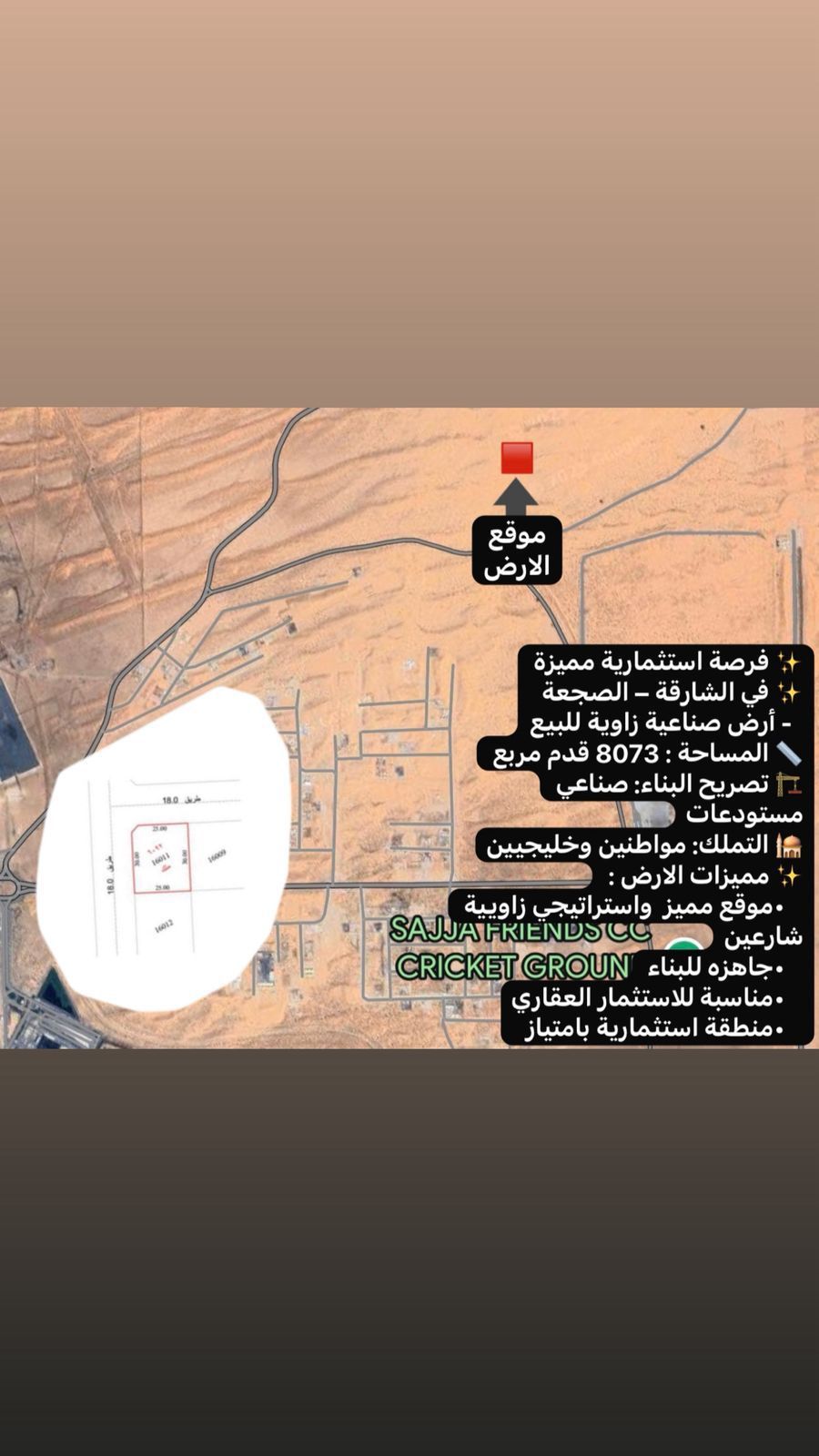 A Unique Investment Opportunity In Sharjah Industrial Land for sale in Al Sajaa Area 8073 SqFt Land Features Prime and Strategic Location - Ready for Construction - Ideal for real estate Investment - A Premium Investment Area Price AED750000 Company Dar Al Mustaqbal real estate