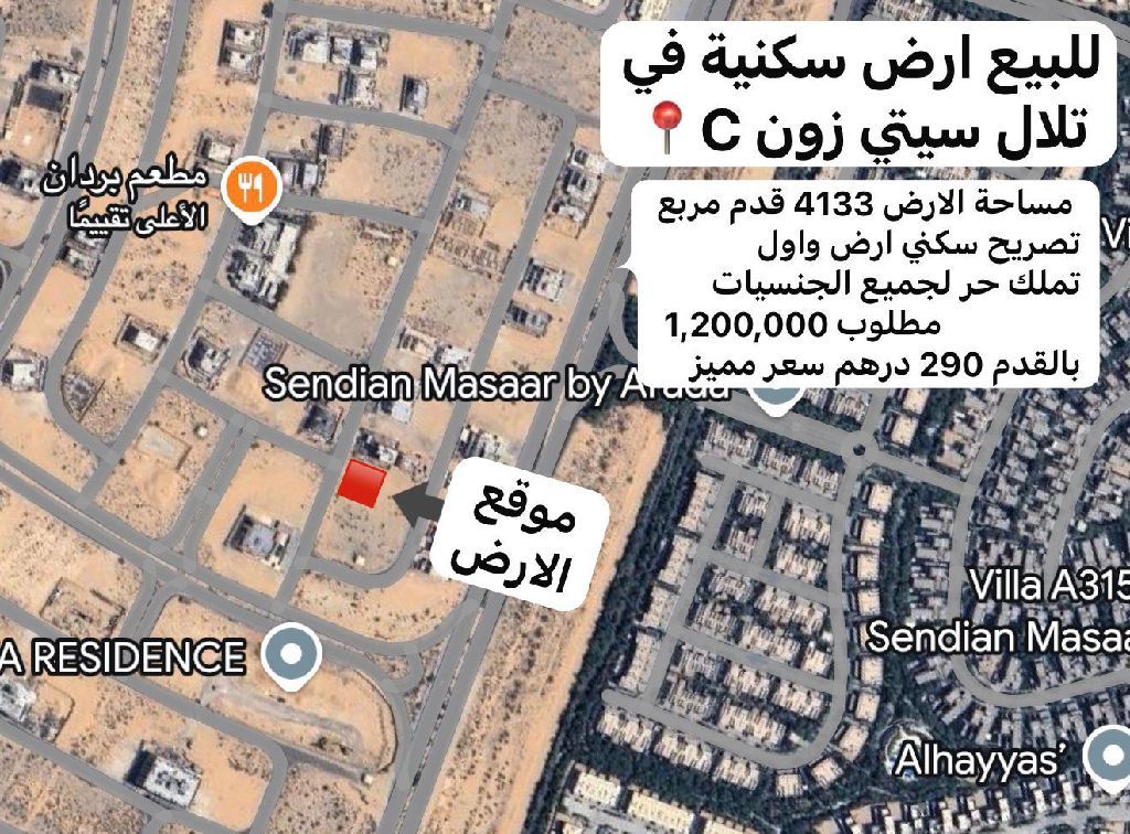 A prime investment opportunity in Sharjah Residential land for sale in Al Tilal City Zone C The plot measures 4133 SqFt. Features include a prime and strategic location, ready for construction, ideal for real estate investment, and a highly desirable investment area. Price AED1200000. Dar Al Mustaqbal real estate Company