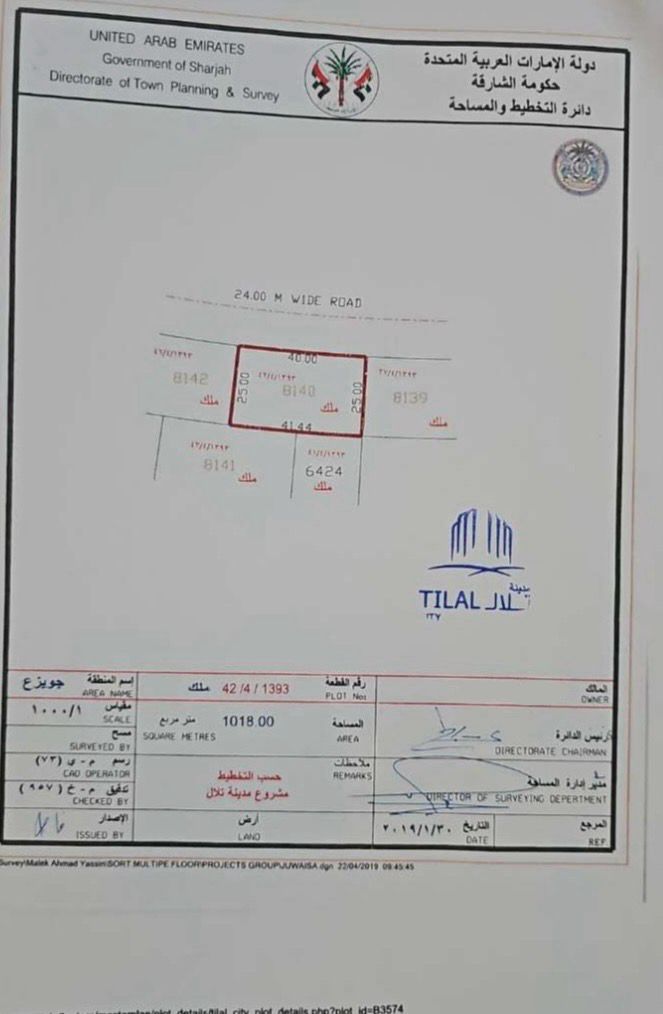 For sale Commercial Land - Tilal City, Sharjah - 10957 ft Commercial land in a privileged location on 24th Street, close to the park and Victoria School, G 3 permit, free ownership for all nationalities. Area 10957 ft - asking price AED4000000