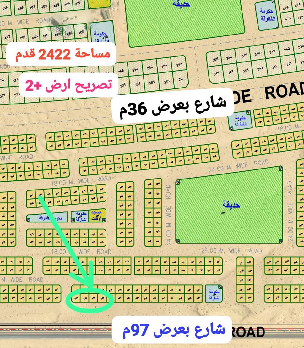 للبيع 4 قطع أرض سكني متلاصقات في إمارة الشارقة بمنطقة السحمة ضاحية الرويضات مساحة 2422 قدم تصريح أرض + 2 موقع مميز على شارع رئيسي بعرض 97م قريب المسجد والحديقة قريب شارع خور فكان سهل الدخول والخروج تملك خليجي وعربي السعر 400000 درهم