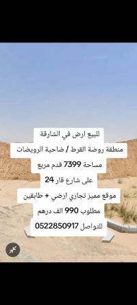 For sale Premium Commercial Plot in Rodhat Al Qurt/ Al Rawidat - Sharjah A highly strategic commercial plot is available for sale in Sharjah, located in Rodhat Al Qurt - Al Rawidat. The plot features a total area of 7399 SqFt, with permission to build Ground + 2 Floors, making it ideal for commercial investment and development. Price AED990000 Direct Deal For more details or inquiries, plea
