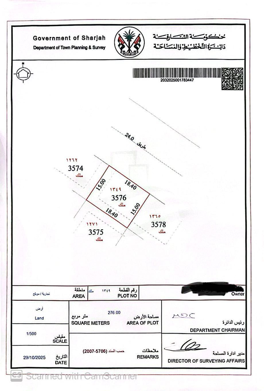 Land for sale in Sharjah - Muwailih Commercial Area A prime investment opportunity in a sought - after location Muwailih Commercial Area - Opposite the schools On an asphalt road Area 276 SQM (2970 SqFt) Building Permit Ground + 3 floors Ownership UAE nationals and GCC citizens asking price AED1200000 Slightly negotiable Contact us for inquiries Al Basmah real estate A company specializing