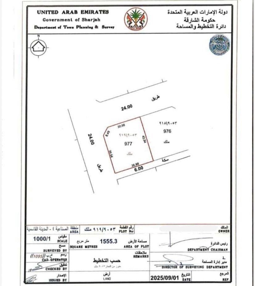 For sale Two Industrial lands (2 corner plots) Al Qasimia Phase 4, Sharjah - 16700 feet per plot - Area 16700 feet - The price of the foot 130 dirhams - Total price per piece AED2171000 - Price Final