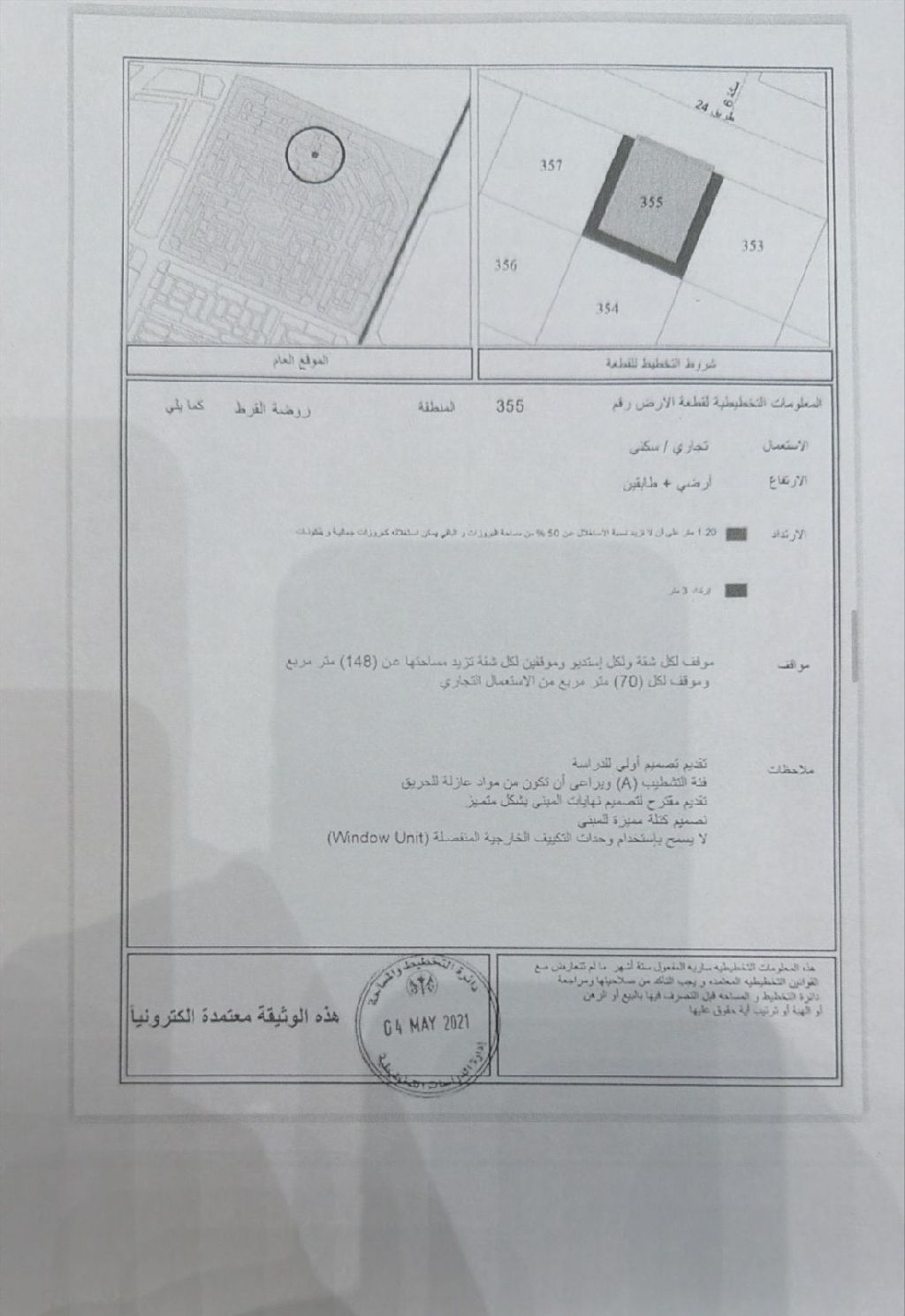 للبيع أرض تجارية في روضة القرط مساحة 6933 قدم موقع مميز جدا أمام الحديقة وجميع الخدمات مطلوب 880 ألف نهائي للتواصل واتساب الجادين