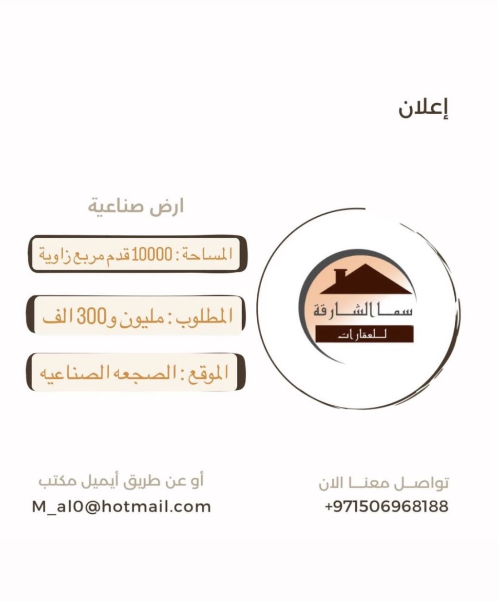 للبيع أرض زاوية في الصجعة الصناعية مساحة 10 ألف قدم بسعر 1300000 درهم