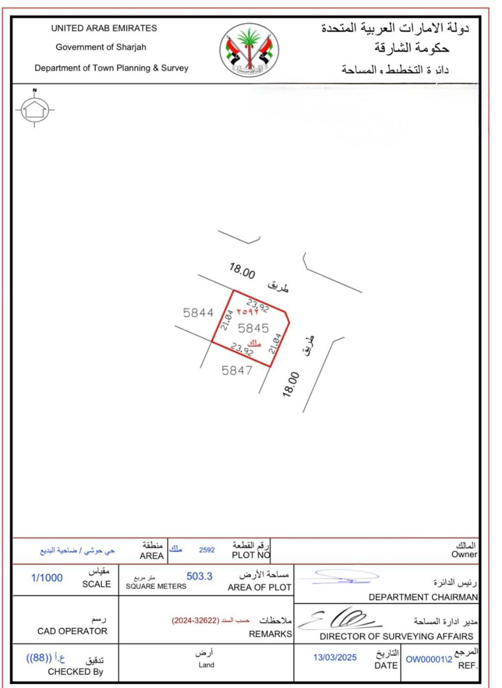For sale Residential Land - Al Houshi, Sharjah - 5417 ft Distinctive residential land corner on two streets, regular and easy to build, and provides excellent flexibility in design and entry. Location Quiet area suitable for family accommodation - Close to major roads and services - Ownership Free for all Arab nationalities asking price AED1300000 A suitable opportunity to live or invest in