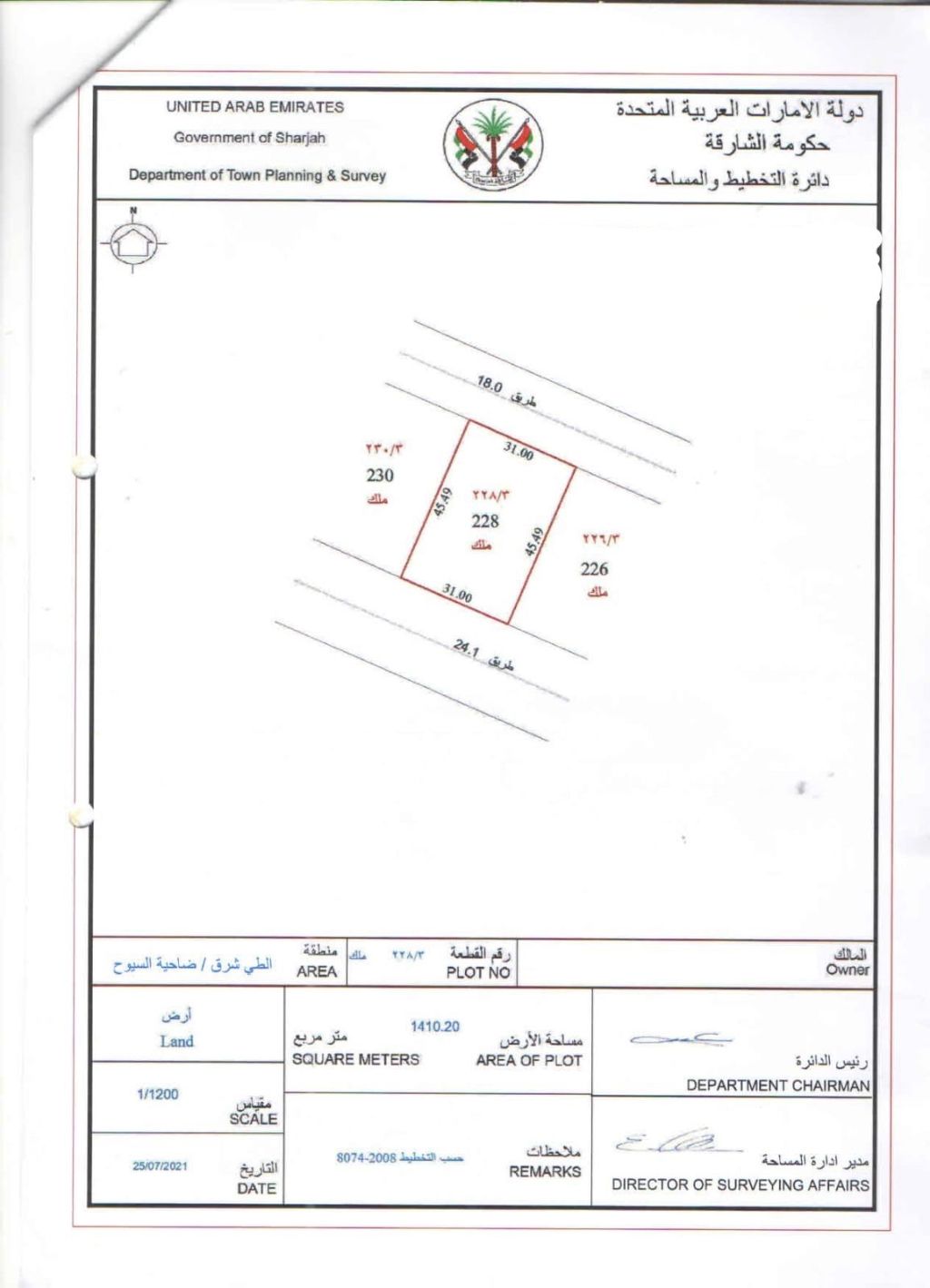 For sale Residential Land - Al - Ti Sharq, Sharjah - 15295 ft Residential land in a privileged location close to Mleiha Street, and the area opposite Al - Siouh, suitable for residential construction. Area 15295 ft - Location Close to the main roads asking price AED2600000