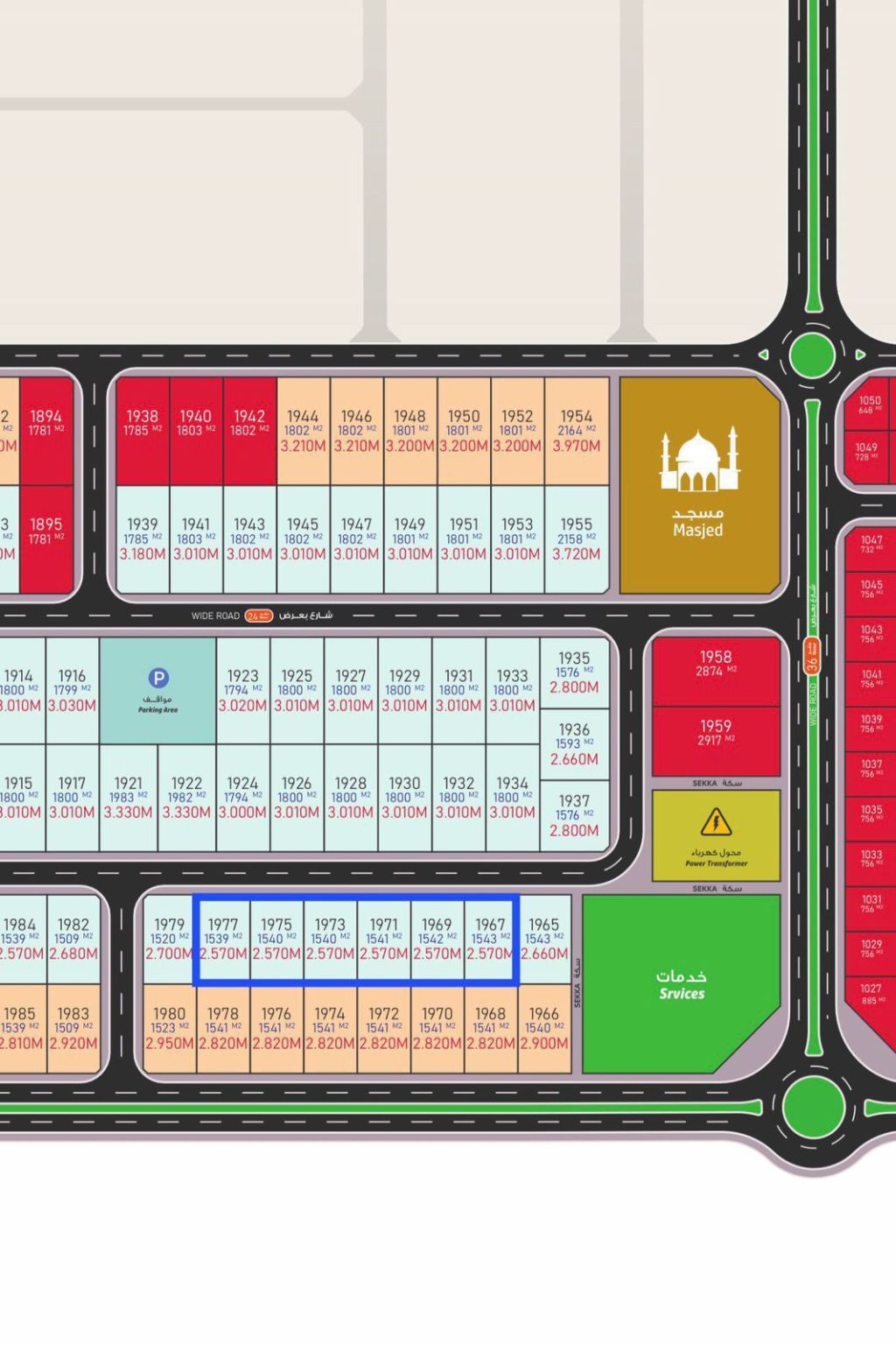 For sale 6 Medium Industrial Lands - Al Qasimia Gate Project (Raskhon) Sharjah - Price AED143 per foot - Spaces and prices per piece 1. Plot 1967 - 16608.71 ft Price AED2375046 2. Plot 1969 - 16597.95 feet Price AED2373025 3. Plot 1971 - 16587.19 ft Price AED2371002 4. Plot 1973 - 16576.42 ft Price AED2368979 5. Plot 1975 - 16576.42 ft Price AED2368979 6. Plot