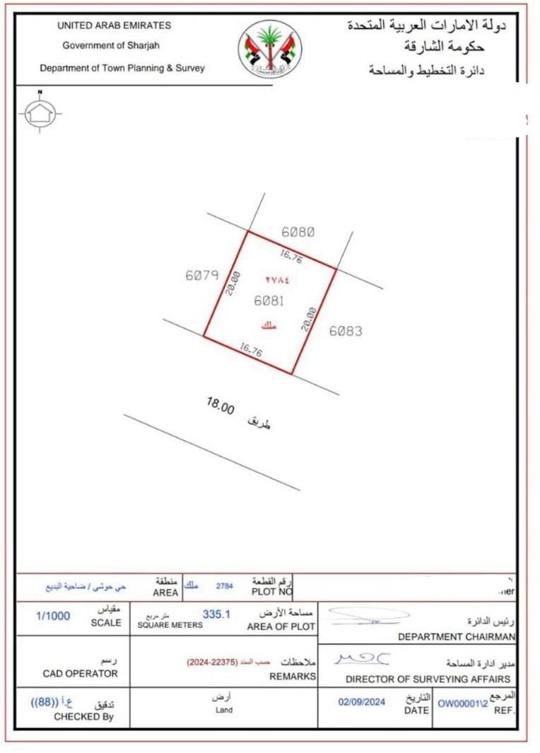 Residential land for sale - Al Houshi, Emirate of Sharjah - Area 3600 ft - asking price AED825000 A location suitable for living and building a villa, ready to start implementation without additional costs