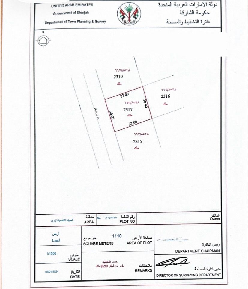 Industrial Land - Al Qasimia Phase III Area 11948 square feet Foot price 115 dirhams (final) Total Price AED1374020