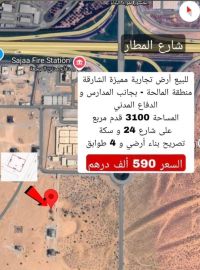 للبيع أرض تجارية مميزة - الشارقة - الموقع منطقة المالحة، بجانب المدارس والدفاع المدني - المساحة 3100 قدم - الموقع التفصيلي على شارع 24 وسكة - تصريح البناء أرضي + 4 طوابق - السعر المطلوب 590000 درهم فرصة ممتازة للاستثمار التجاري في موقع حيوي ومخدوم