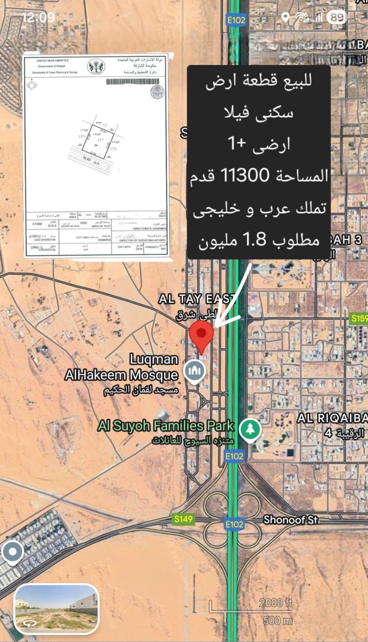 للبيع أرض سكنية في الشارقة - منطقة الطي التصنيف سكني فيلا الموقع الطي - موقع مميز قريب من الخدمات والطرق الرئيسية المساحة 11300 قدم مربع التملك عرب ومواطني دول مجلس التعاون الخليجي السعر المطلوب 1800000 درهم موقع قريب من مسجد ومرافق عائلية مناسبة لبناء فيلا خاصة أو استثمار سكني